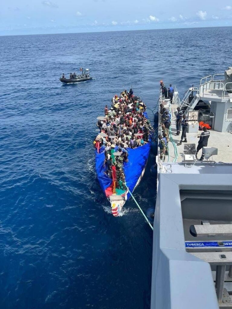 En coordination avec l’Armée de l’Air, la Marine nationale a secouru, le lundi 22 septembre 2025, à 100 km au large de Dakar, une pirogue en provenance d’un pays voisin et transportant 259 candidats à l’émigration irrégulière.