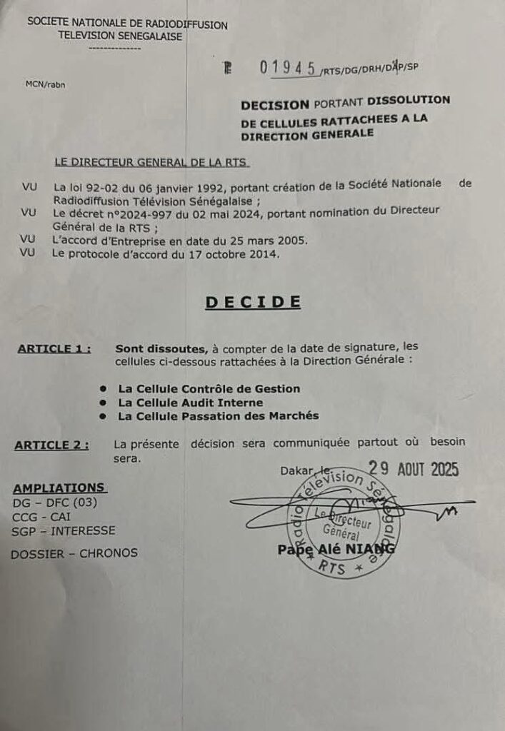 Au moment où le Sénégal s’engage résolument dans la transformation de son secteur parapublic, la décision du directeur général de la Radiodiffusion Télévision Sénégalaise (RTS) de supprimer le contrôle de gestion, l’audit interne et la cellule de passation des marchés interpelle. Elle interroge non seulement sur la vision managériale de l’entreprise, mais surtout sur la #cohérence de cette démarche avec les ambitions nationales de #transparence, de #performance et de #redevabilité.