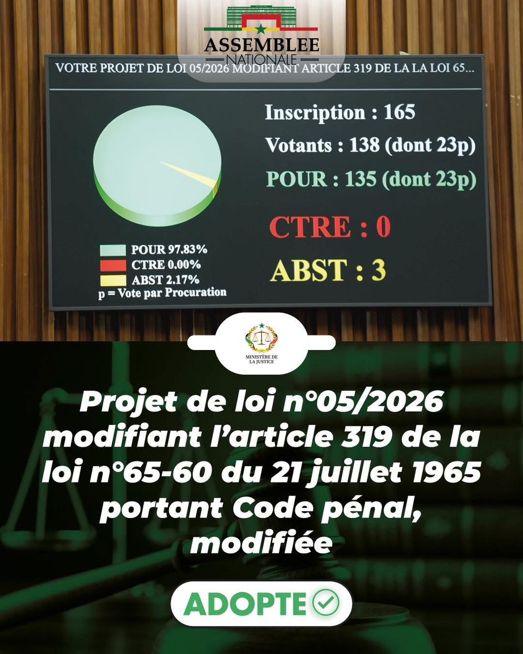 Le Collectif Noo Lank se félicite ainsi de ce pas important vers la restauration et la protection de nos valeurs cardinales, longtemps défendues par de nombreux citoyens et organisations de la société civile.