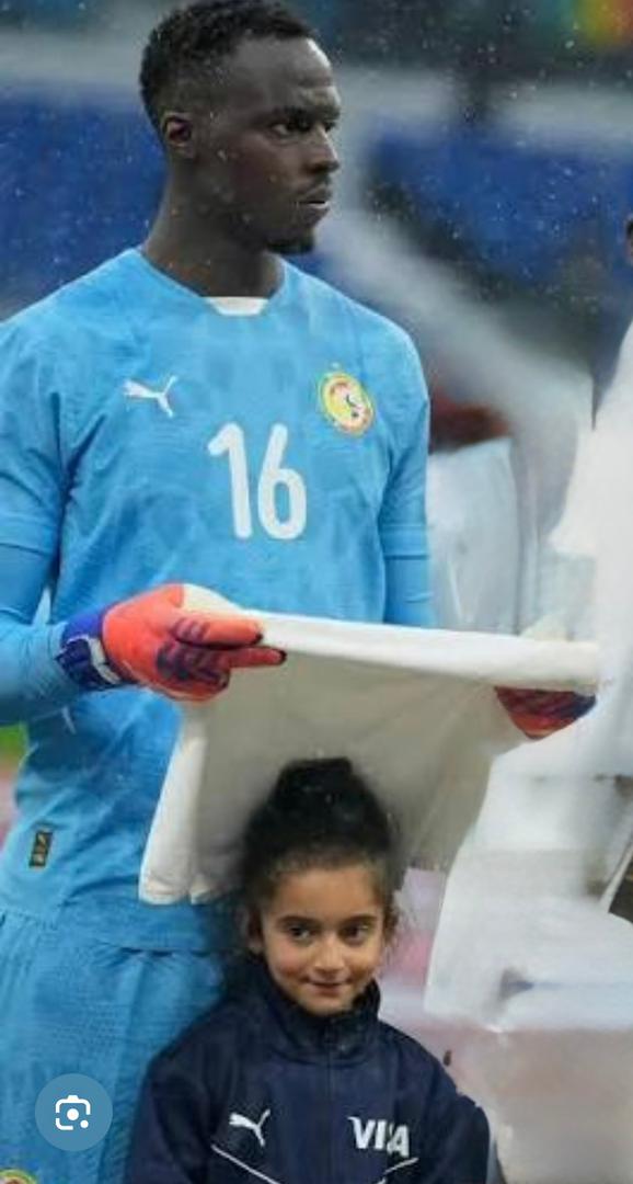 Sous la pluie battante du Grand stade de Tanger, au Maroc, ce mardi 23 décembre 2025, la scène est d’une simplicité désarmante. Le portier titulaire des Lions du Sénégal est debout, concentré. Devant lui, une enfant, petite, calme.
