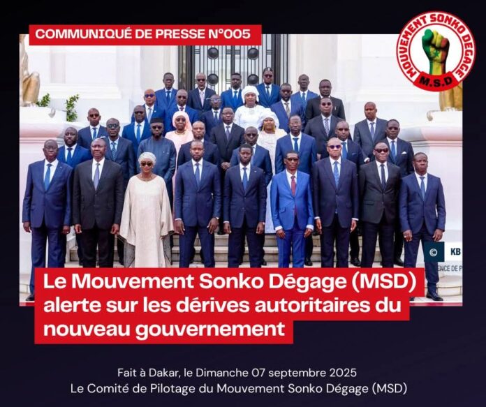 Le Mouvement Sonko Dégage (MSD) alerte sur les dérives autoritaires du nouveau gouvernement