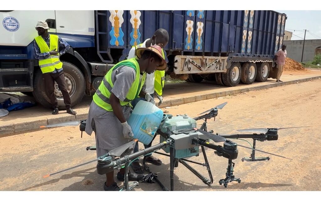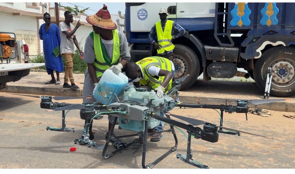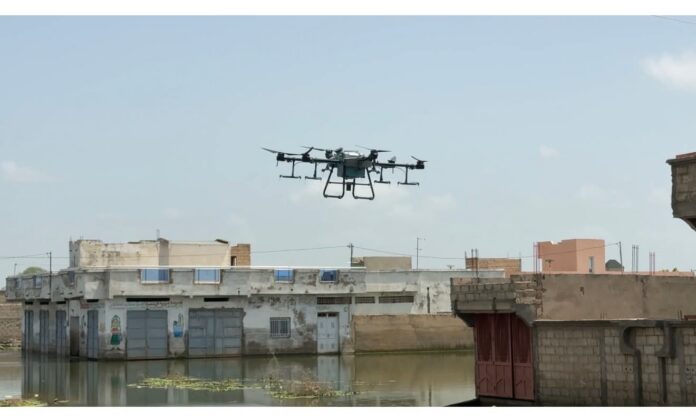 Une première historique à Touba : des drones de pulvérisation survolent désormais les zones inondées pour neutraliser les moustiques vecteurs du paludisme.